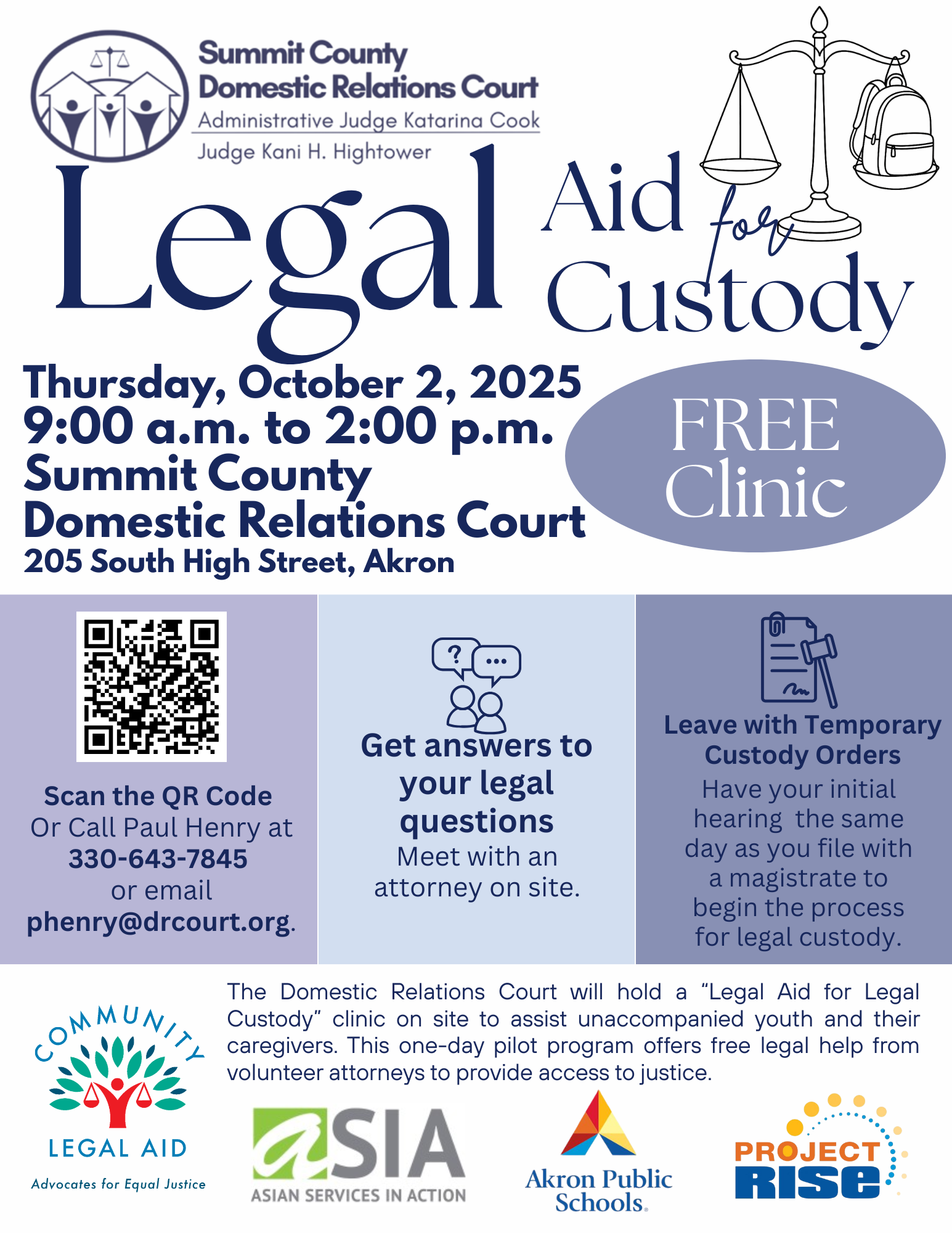 At our FREE Legal Aid for Custody Clinic you can: